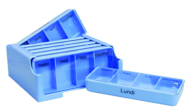 Pilulier hebdo tiroirs Medi 7 bleu fr/nl